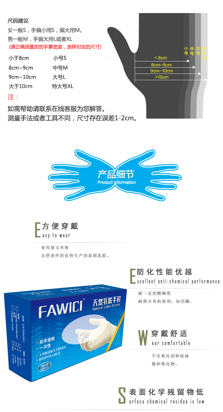 优点:1.乳胶手套为乳白色,干净,卫生;